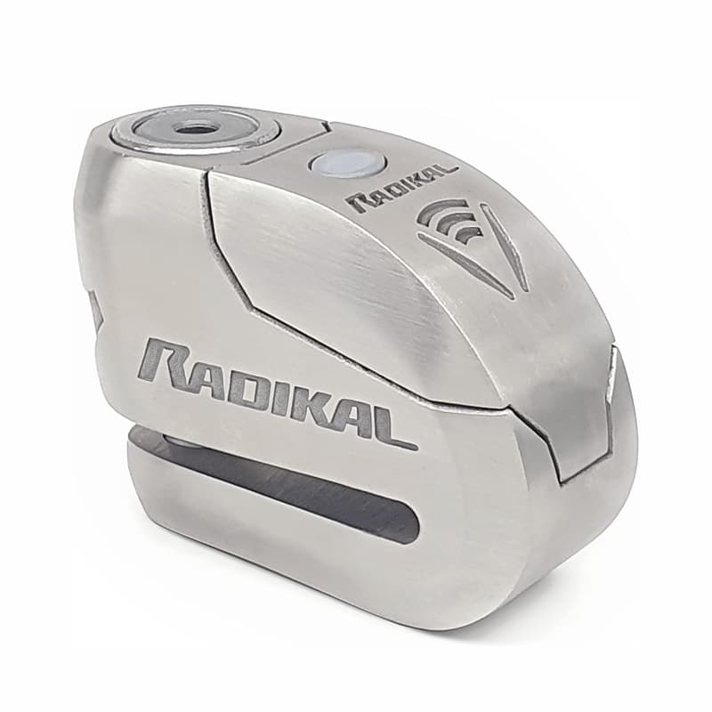 The RADIKAL Alarmed Disc Lock represents the pinnacle of certified motorcycle security, earning prestigious CLASSE SRA approval through rigorous independent laboratory testing. This premium alarmed disc lock distinguishes itself with specially hardened stainless steel construction and an innovative double locking mechanism featuring a substantial 14mm locking pin.