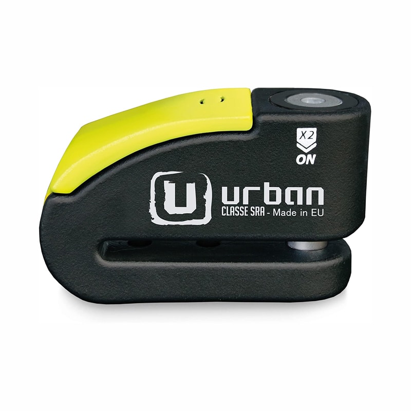 The URBAN Alarmed Disc Lock achieves an impressive 19 out of 20 security rating through CLASSE SRA testing. This high-end motorcycle disc lock features high-strength forged steel construction with an innovative double locking system that secures the 14mm diameter shaft at both ends, effectively doubling resistance against forced entry compared to single-locking designs.