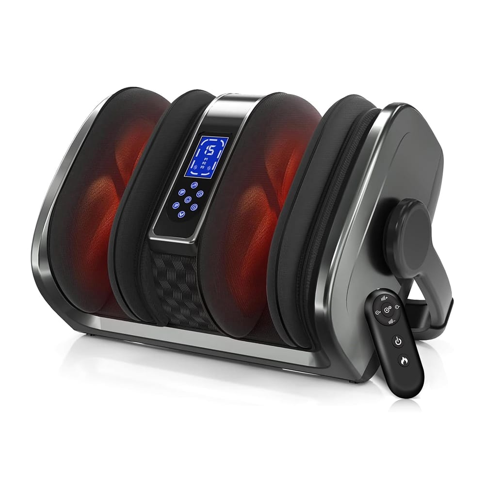 The customisation options are particularly impressive, with 5 squeeze intensity levels, 3 massage modes, and 2 heating settings. The wireless remote and LCD touch panel eliminate the need to bend over during adjustments.