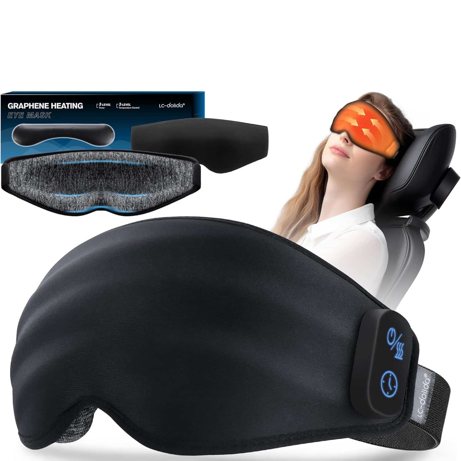 The LC-dolida Graphene Heated Eye Mask offers clinical-grade warmth (116-138°F) recommended by doctors for eye fatigue relief. Its nano-level graphene heating film ensures large-area uniform warmth, while the intelligent chip maintains safe, consistent temperatures.