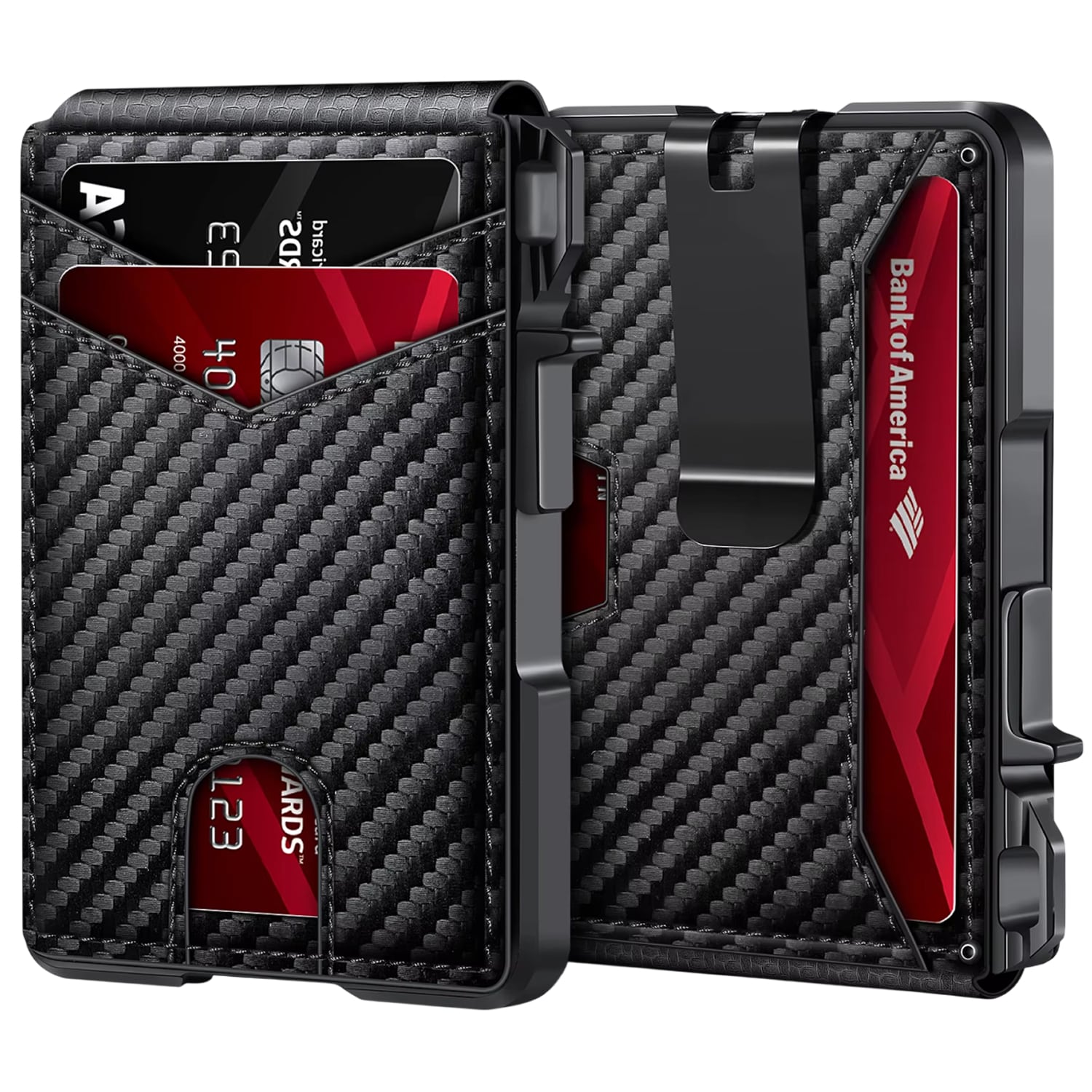 The innovative pop-up trigger mechanism represents a technological breakthrough in wallet design, allowing users to fan out cards effortlessly with a simple slide button activation. The engineering excellence extends to its compact 4.1 x 2.6 x 0.55-inch dimensions, proving that superior functionality doesn't require sacrificing portability or style.