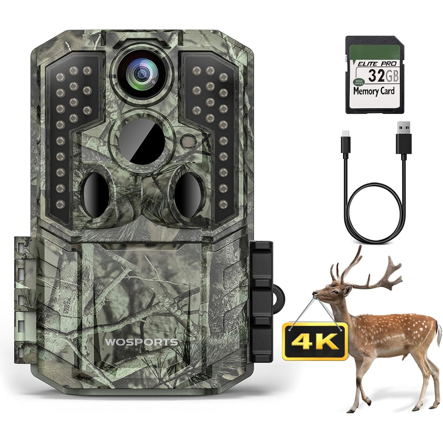 The WOSPORTS Trail Camera delivers 48MP stills and 4K video at an accessible price point, making high-resolution wildlife monitoring available to more users. The built-in 2" LCD screen allows immediate field review.