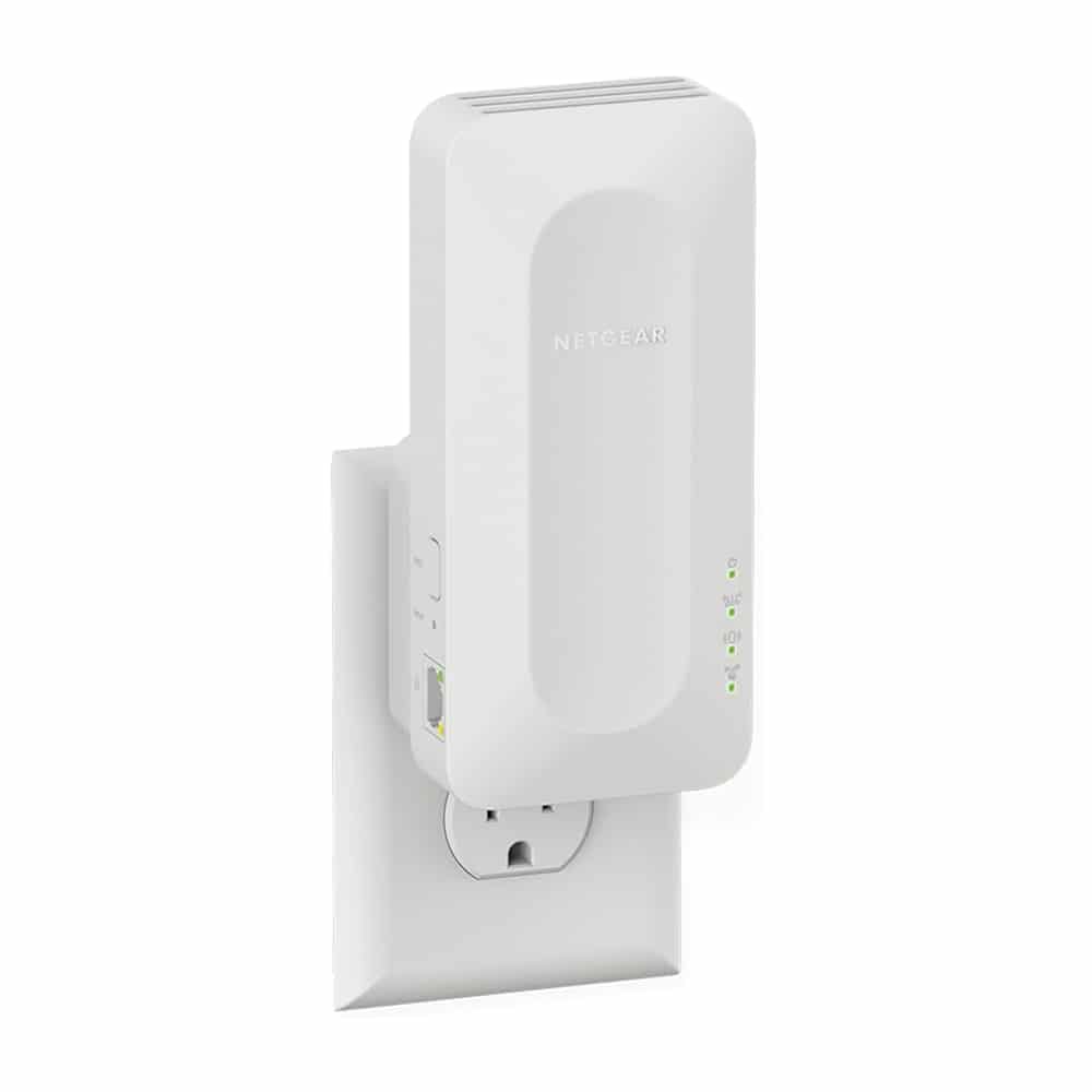 The NETGEAR EAX16 WiFi Booster offers reliable mesh networking capabilities with 1,500 square feet coverage extension and support for up to 20 connected devices. This wall-plug design integrates discretely into home environments whilst providing AX2400 speeds up to 2.4Gbps for smooth streaming and gaming experiences.